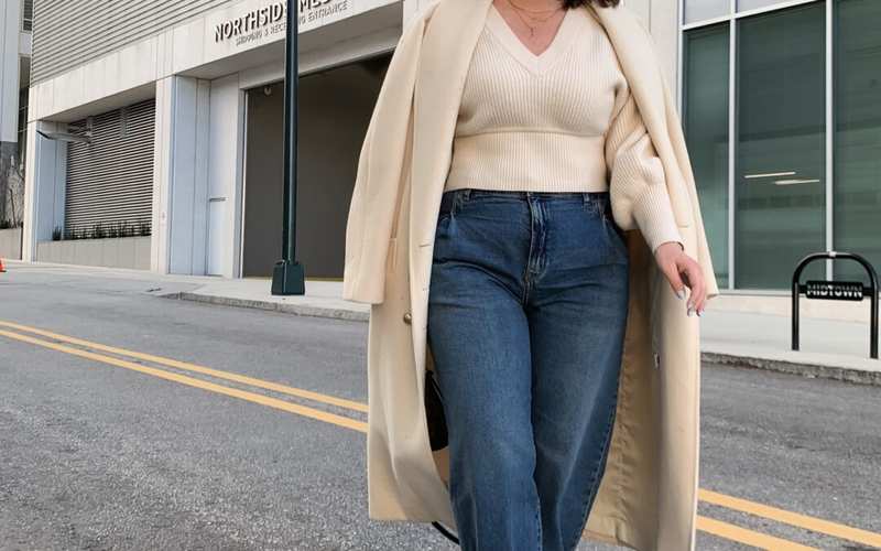 SWEATER | SIMILAR COAT | DENIM (SIMILAR)| SIMILAR BOOTIES